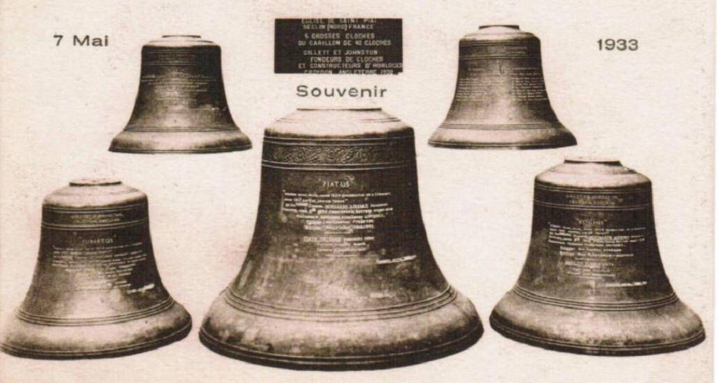 Seclin Implanté dans la tour de l'église Saint Piat en 1933, le carillon Gillets et Johnston de Seclin a une grande importance dans l'histoire des carillons Français. Le carillon historique du XVIème siècle ayant été détruit par les Allemands lors du premier conflit mondial, on s'adressa à un expert campanaire pour la reconstruction, Me Lannoy. Celui-ci jugeant de mauvaise qualité des réalisation récentes des fondeurs français, s'adressa à une fonderie de carillon anglaise. Dès lors, les fonderies françaises durent s'adapter et faire au moins aussi bien que Seclin ou... disparaitre !